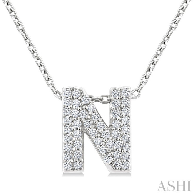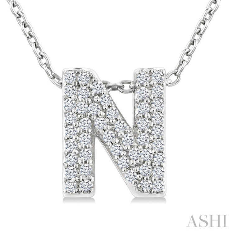 1/6 Ctw Bubble Accent Initial 'N' Round Cut Diamond Fashion Pendant With Chain in 10K White Gold